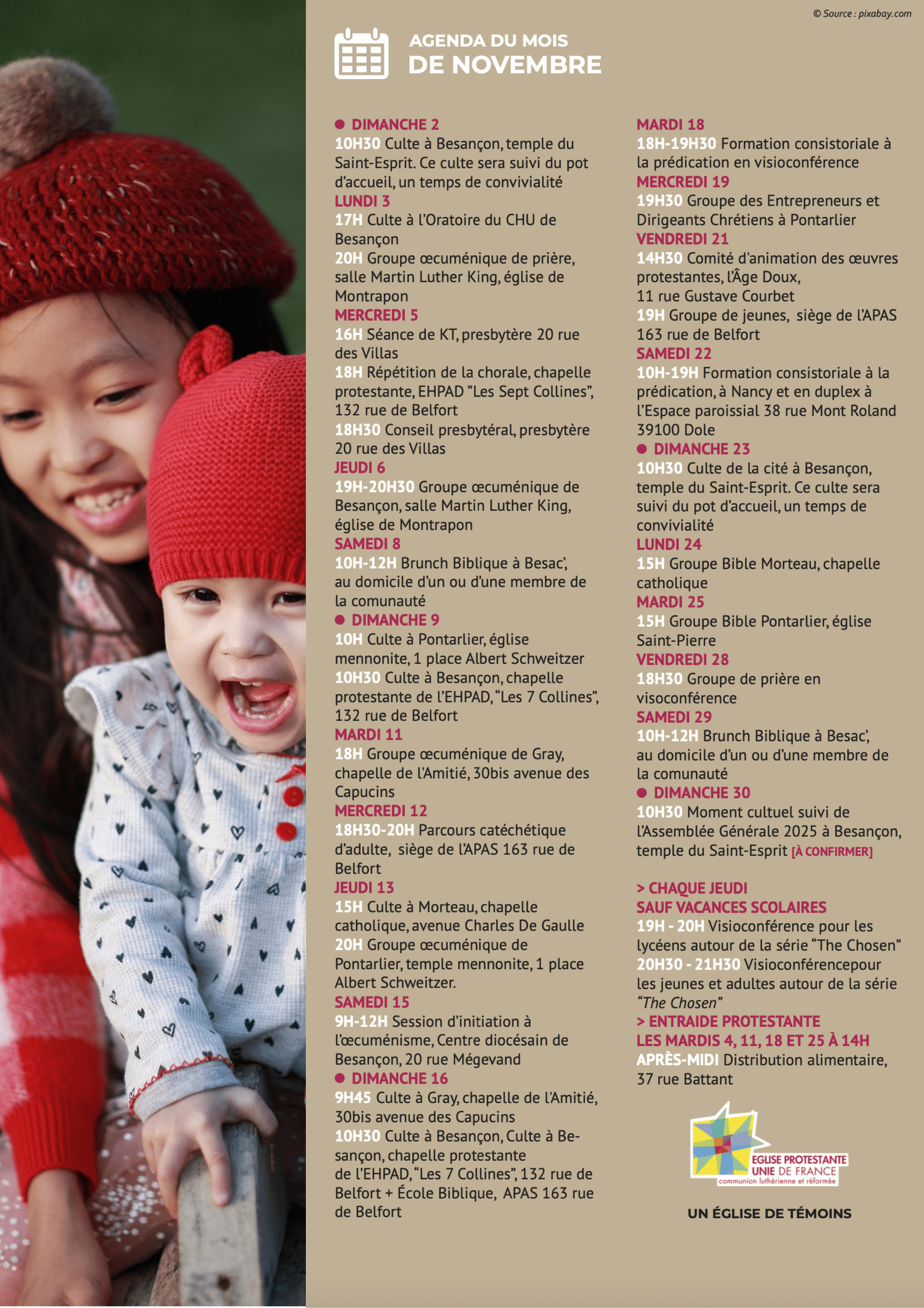 Voici les dates importantes de notre paroisse de Besançon & Environs à retenir durant le mois de novembre 2025
